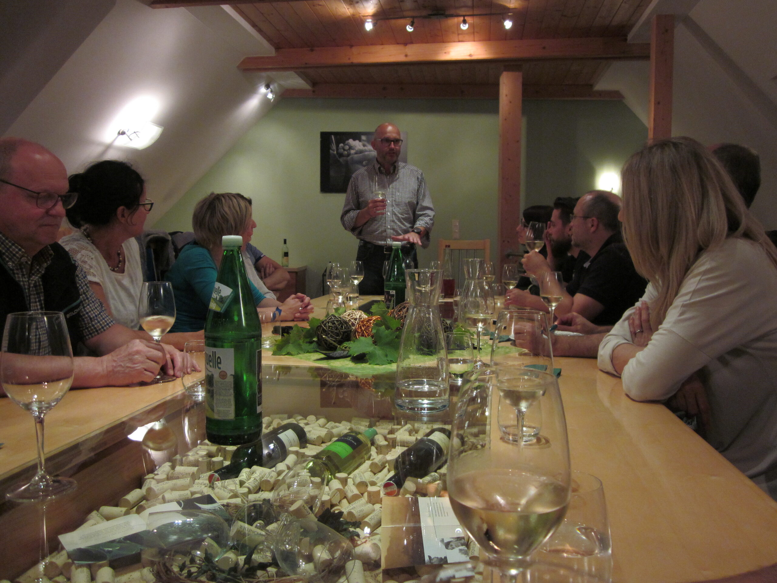 Auf das bekömmliche Frühstück im sehr schön gelegenen Vierzigerhof, folgte eine intensive zweite Probe für unsere Konzerte bevor es dann zur Stadtführung in Langenlois ging. Das Städchen Langenlois kann auf eine intensiv mit dem Weinbau verflochtene, lange Geschichte zurück blicken. Da erfuhren wir auch, was es mit den bis heute einflussreichen «Vierzigern» auf sich hat: Dies war ein Gruppe, die im Mittelalter vom oberen Dorfteil umsiedelte ins Gebiet des heute grösseren und wichtigeren unteren Dorfteils mit den beiden Hauptplätzen und Kirche. Am Nachmittag ging es gleich kulturell weiter mit dem Besuch und einer Führung im Loisium, dem lokalen Weinmuseum, das einen multimedial und museumspädagogisch aufwändig gestalteten, abwechslungsreichen Rundgang zu bieten hatte. Beim Quiz, charmant moderiert von Tatjana, unserer Leiterin durch den Rundgang, stellte sich heraus, dass die meisten schon am Vorabend gut zugehört hatten: Die letzte Frage musste entscheiden, welche der beiden Gruppen den Siegerpreis (Grüner Veltliner natürlich…) überreicht bekam.